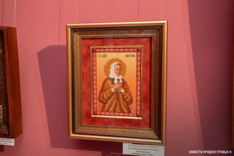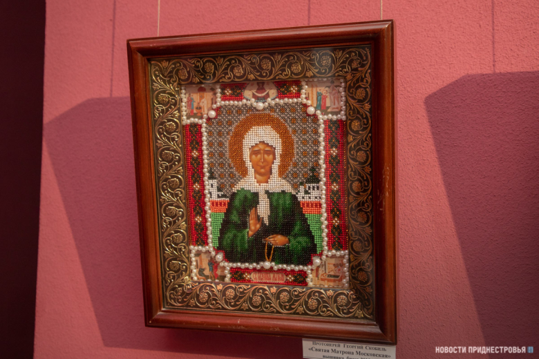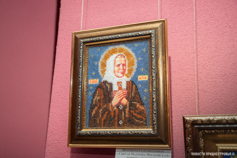 Тирасполь, 20 январь. /Новости Приднестровья/. Матрона Московская, Святые апостолы Пётр и Павел, Николай Чудотворец, Пётр и Феврония Муромские и другие православные святые на иконах, выполненных в технике лицевого шитья. Сегодня в столичной картинной галерее открылась первая персональная выставка протоиерея Георгия Скобиль. Экспозиция посвящена матери священнослужителя – Таисии Ивановне Скобиль, которой не стало год назад.
