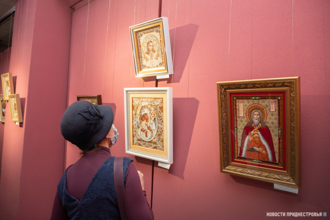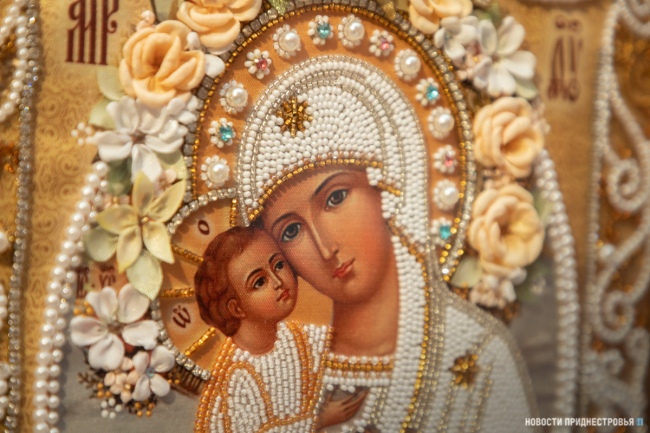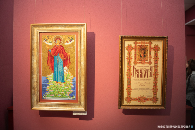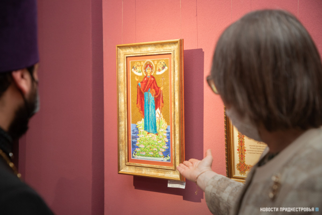В Тирасполе открылась выставка православных икон, расшитых бисером и драгоценным камнями