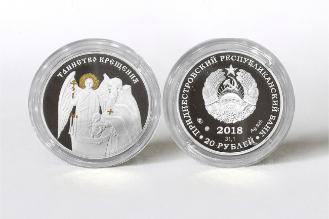 Тирасполь, 2 августа. /Новости Приднестровья/. Приднестровский республиканский банк ввёл в обращение серебряные памятные монеты «Таинство крещения». Они дополнят серию «Праздники и традиции», говорится на сайте ПРБ.