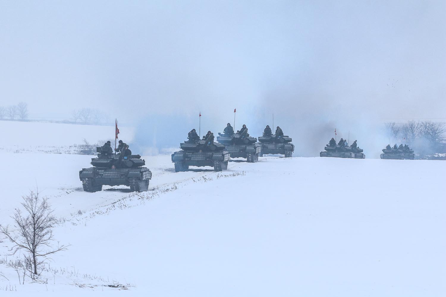 По команде танковое подразделение выдвинулось на огневой рубеж, развернулось в боевые порядки и с ходу уничтожило превосходящие силы условного противника. Выполнив все нормативы, танковые подразделения вернулись в пункты постоянной дислокации.
