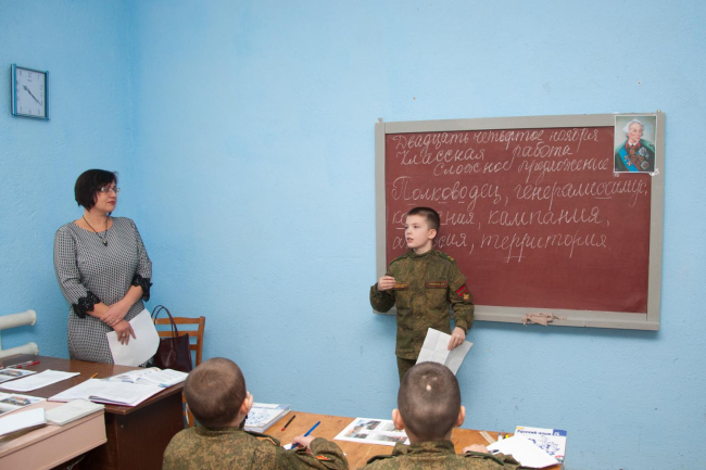 Один из таких уроков – урок русского языка на тему «Сложное предложение» – был связан с именем великого полководца. Ребята подготовили к уроку сочинение на тему «Я – Суворовец», рассматривали афоризмы Суворова, зачитывали доклады о его жизни и военных подвигах, сообщает пресс-служба Минобороны ПМР.