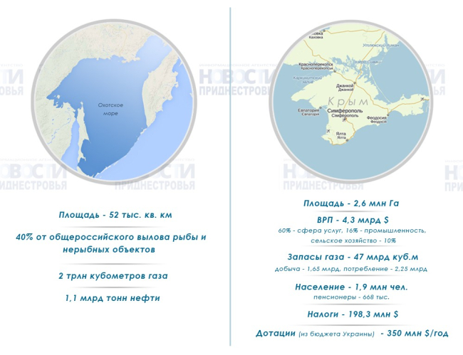 27 Мар., 2014, 13:30В марте 2014 года РФ не только присоединила к себе Крым, но и стала полновластной хозяйкой Охотского моря