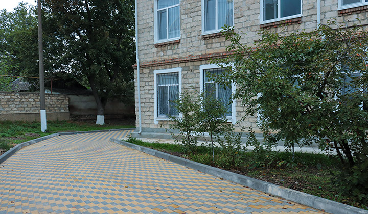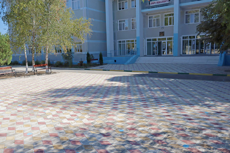 В этом году работы по благоустройству дворовых территорий учреждений образования выполнены и на других объектах. Например, в Дубоссарской гимназии № 1, где в 2019-м выполнили ремонт площадки у входа в здание.