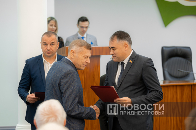 В свою очередь, решением президиума ОСТК юбилейных медалей «35 лет Объединенному Совету трудовых коллективов» были удостоены председатель Счётной палаты ПМР Светлана Изместьева, председатель Тираспольского городского Совета народных депутатов Вадим Дони, заместители главы столичной госадминистрации Геннадий Горох и Стелла Бай.