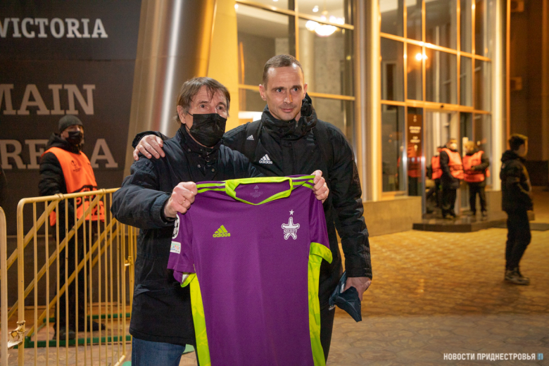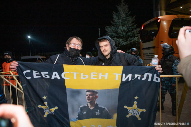 Скромный фанат назвал только свое имя – Сергей. Оказалось, это один из самых преданных и щедрых болельщиков «Шерифа». Он даже подготовил подарки для своих кумиров – знамена с фотографиями. Сергея в клубе знают и уважают. Это подтвердил тренер вратарей Сергей Пащенко.