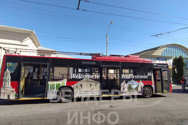 Троллейбус с изображением достопримечательностей ПМР курсирует по Бендерам