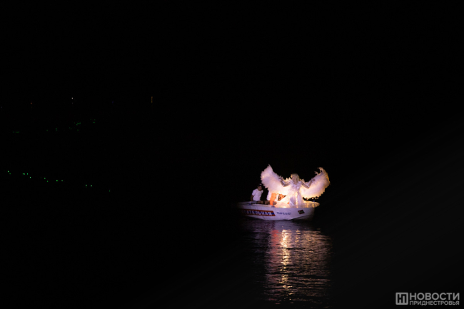 Представление развернулось не только на сцене, но и на воде. Завершающим аккордом стали огромные буквы «МС», высветившиеся на фермах железнодорожного моста через Днестр.