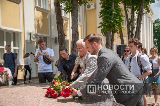 «Сегодня мы не просто вспоминаем всех, кто отдал жизни за свой народ в годы Великой Отечественной. Нам пришлось пережить в 1992 году другую войну. Как сказал тогда генерал Лебедь, герой той войны, на благодатную землю Приднестровья легла зловещая тень фашизма. Сотни тысяч приднестровцев, спасая свои жизни и жизни своих детей, были вынуждены покинуть дома и уехать. Наш народ ценой колоссального напряжения своих сил и огромных жертв одержал победу», – сказал президент Приднестровского госуниверситета Степан Берил.