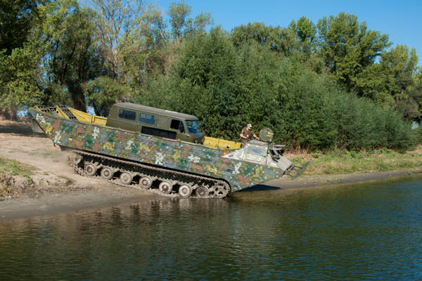 «В ходе занятия отрабатывались такие вопросы, как погрузка техники на ПТС-2, выход плавающего бронетранспортера к срезу водной преграды, пересечение водной преграды, выгрузка техники на противоположном берегу и возвращение ее на исходный берег», – пояснил начальник инженерного Управления полковник Александр Гилак.