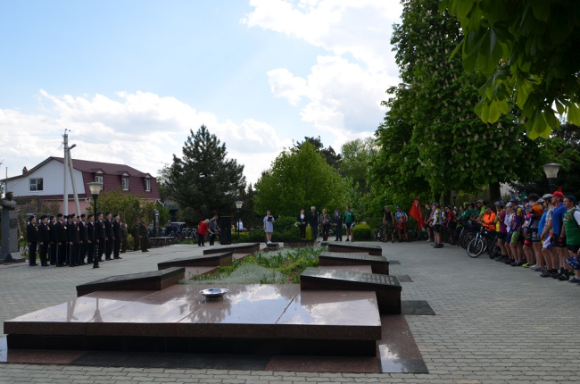 Дубоссары, 4 мая. /Новости Приднестровья/. На дубоссарском мемориальном комплексе Воинской Славы сегодня встречали участников велопробега «Знамя Победы». Напомним, что веломарш, приуроченный к 74-й годовщине Великой Победы, проводится второй год подряд при поддержке Администрации Президента ПМР, Россотрудничества, Министерства обороны, МВД и госадминистраций городов и районов.
