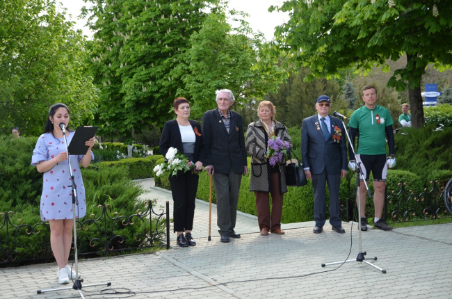 В Дубоссарах более сотни велосипедистов приветствовали ветеран Великой Отечественной войны Владимир Костенко и заместитель главы госадминистрации Наталия Кравец.