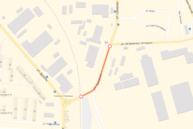 04 Сен., 2018, 11:38Бендеры, 4 сентября. /Новости Приднестровья/. Улица Суворова в Бендерах на участке от улицы 28 Июня до железнодорожного переезда перекрыта до 15 сентября включительно.