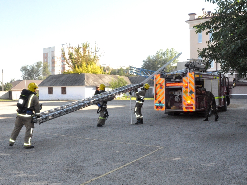 В средней школе №11 прошли тактико-специальные учения по отработке совместных действий при пожаре. Согласно тактическому замыслу, возгорание произошло в библиотеке, которая находится на втором этаже, и там есть пострадавший человек.