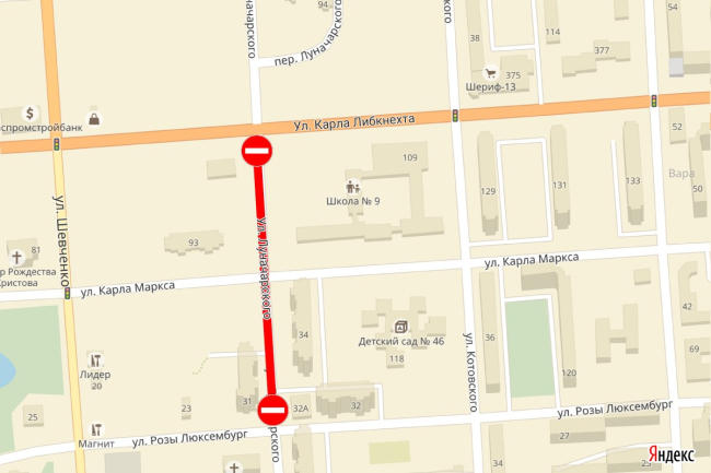 Ограничение движения транспорта коснётся участка дороги от улицы Карла Либкнехта до улицы Розы Люксембург