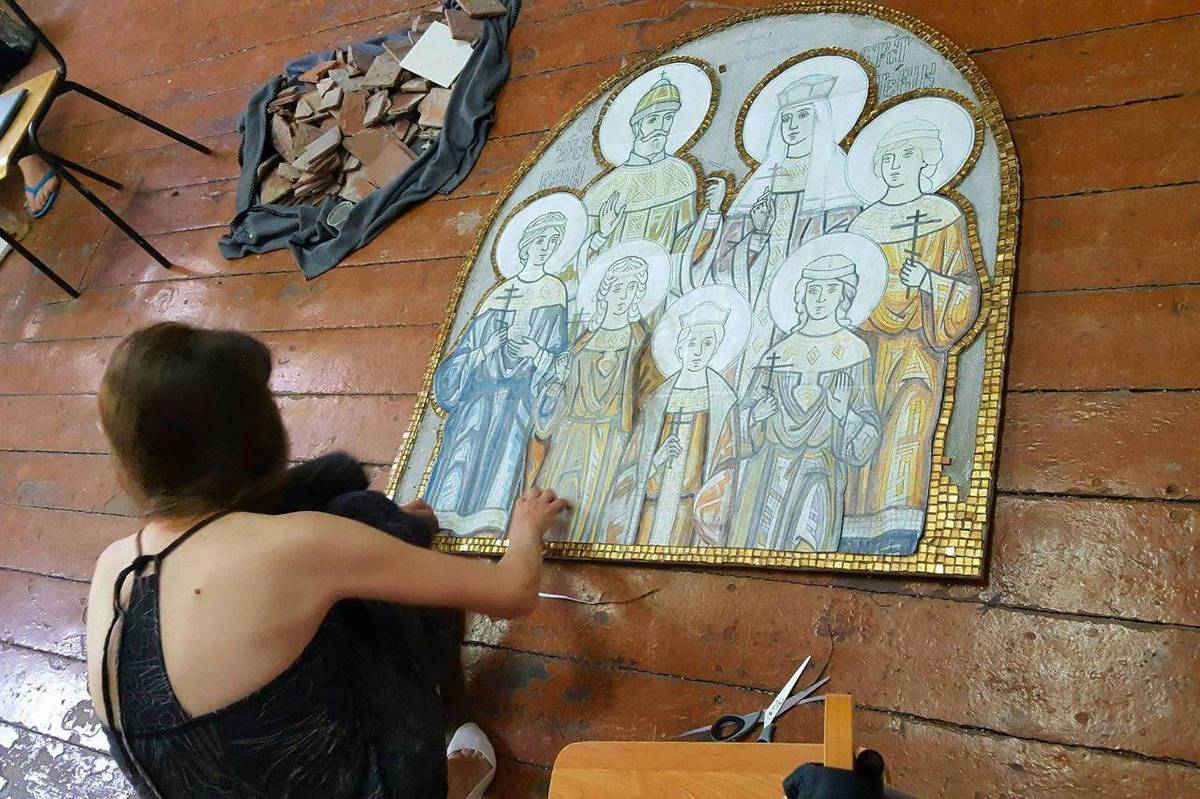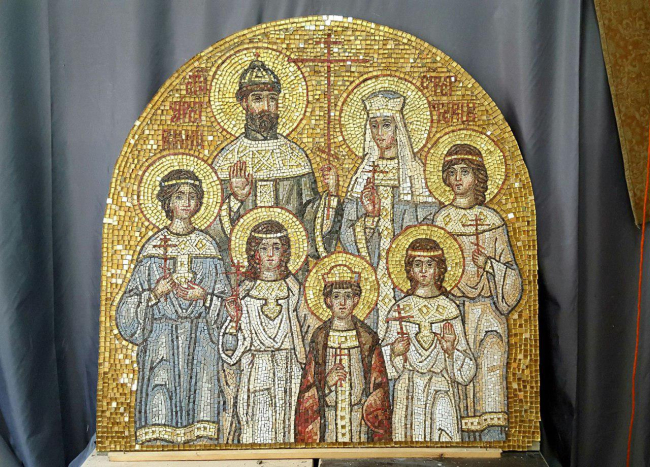 Студенты высшего художественного колледжа полгода работали над созданием семи мозаичных образов царской семьи. Все они выполнены согласно законам канонической живописи