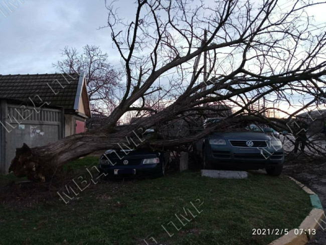 Упавшее дерево повредило два автомобиля в Дубоссарах