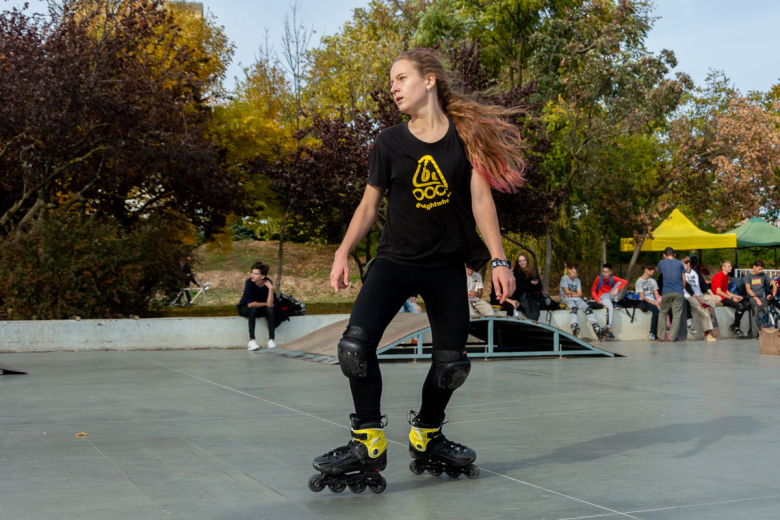 Помимо парней, попробовать свои силы и посоревноваться пришли и девушки, а точнее одна девушка – 15-летняя Алиса из Тирасполя. Она выступала на роликах, катается на них с 5 лет. А совсем недавно девушка попала в Кишиневскую команду Eight wheels, в которой 71 человек - любителей роллер-спорта.
