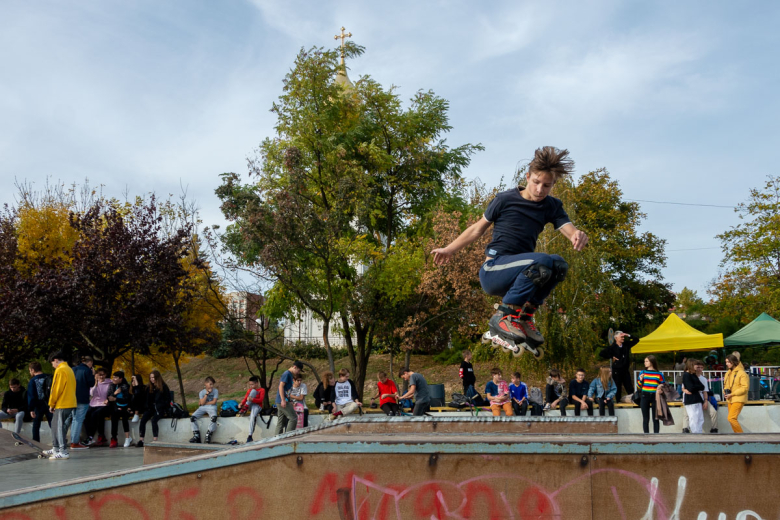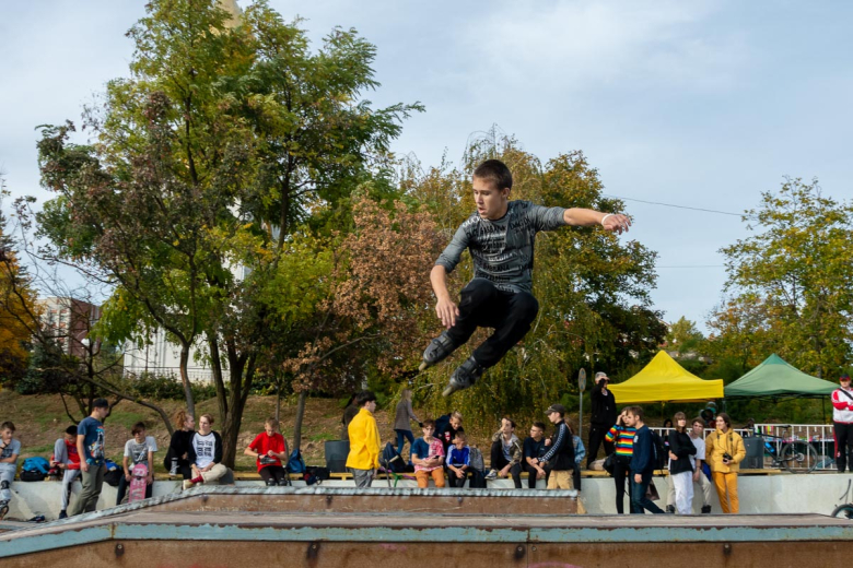 В рамках фестиваля прошли соревнования между скейтерами, роллерами и самокатерами, в которых приняли участие порядка тридцати молодых людей.