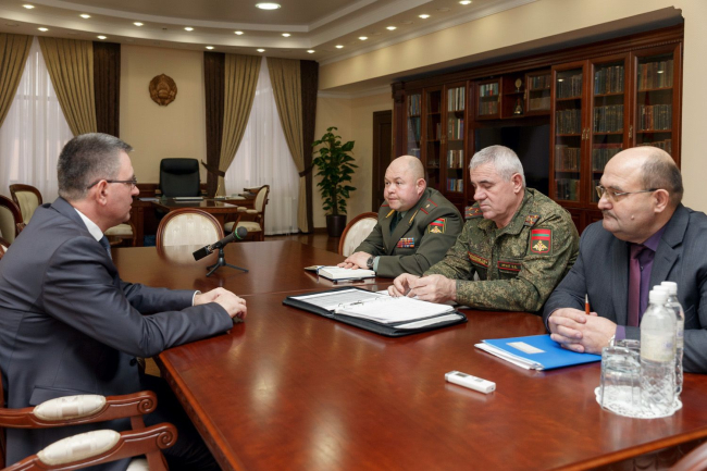 Тирасполь, 19 декабря. /Новости Приднестровья/. Министр обороны Олег Обручков и его заместитель Олег Игнат проинформировали президента о ходе ремонтно-строительных работ и благоустройстве территории Тираспольского Суворовского военного училища.