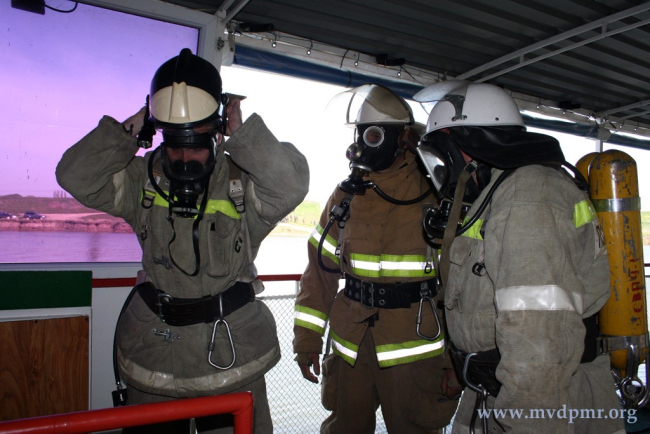 По замыслу учений, прогулочный теплоход «В. Грушка» с пассажирами сел на мель. Существует вероятность повреждения корпуса судна и реальная угроза розлива нефтепродуктов в реку. При попытке выбраться из затруднительной ситуации в моторном отсеке произошло короткое замыкание.