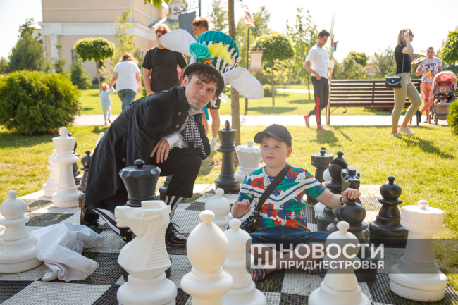 На главной парковой аллее и рядом с ней можно было пройти лабиринт, устроенный Станцией юных туристов, присесть к мольберту детской художественной школы и попробовать себя в роли художника, примерить Распределяющую шляпу из сказки про Гарри Поттера, сфотографироваться с героями Зазеркалья, в роли которых выступил театр «Э.Т.О.», пообщаться с братьями нашими меньшими, поучаствовать в весёлых эстафетах, прокатиться на лошади. Свои локации представили библиотека и краеведческий музей.