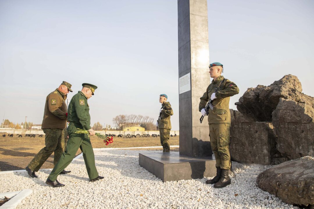 Год назад на территории воинской части открыли Мемориал разведчикам всех времён. В память о подвигах разведчиков у его подножия горит вечный огонь, зажжённый на столичном Мемориале Cлавы. Сегодня память погибших защитников почтили минутой молчания.