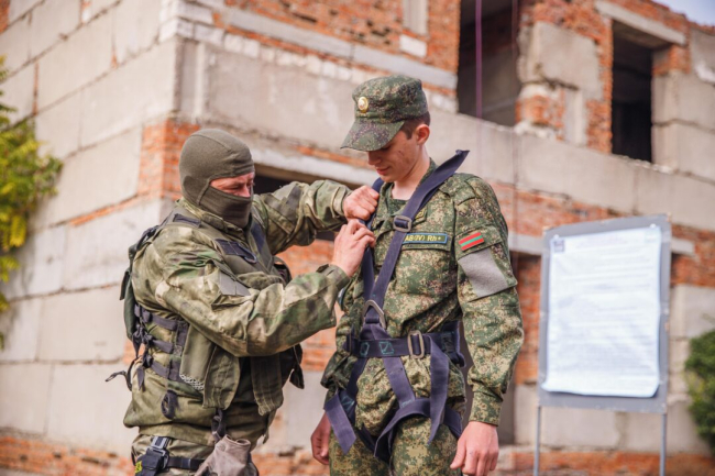 Как сообщила пресс-служба Министерства обороны ПМР, опытные инструкторы отработали с военнослужащими проникновение в здание через окна, осмотр внутреннего пространства, организацию боевого прикрытия при спуске.