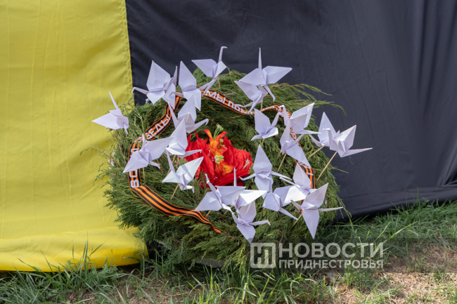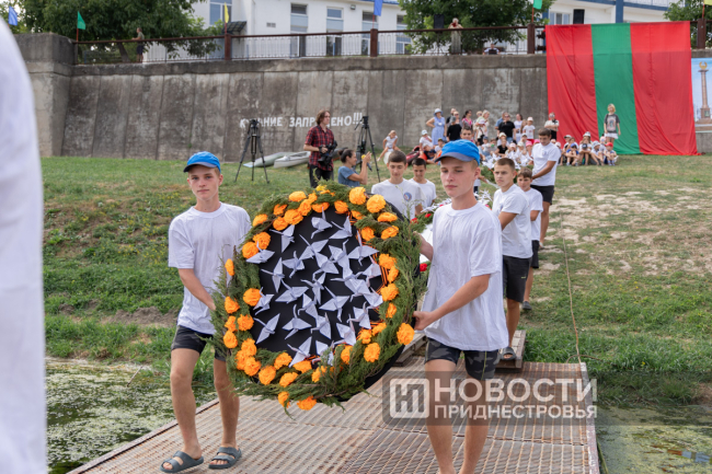 Изготовленные корабли-журавли стали частью больших венков памяти. На берегу реки их передали гребцам, представляющим городские предприятия «КоммуналДорСервис» и Бендерское троллейбусное управление, а также ветеранов спорта. На лодках класса «дракон» они доставили венки на середину реки и в память о погибших в Великой Отечественной войне пустили по волнам Днестра. Гребцов поддержали и байдарочники.