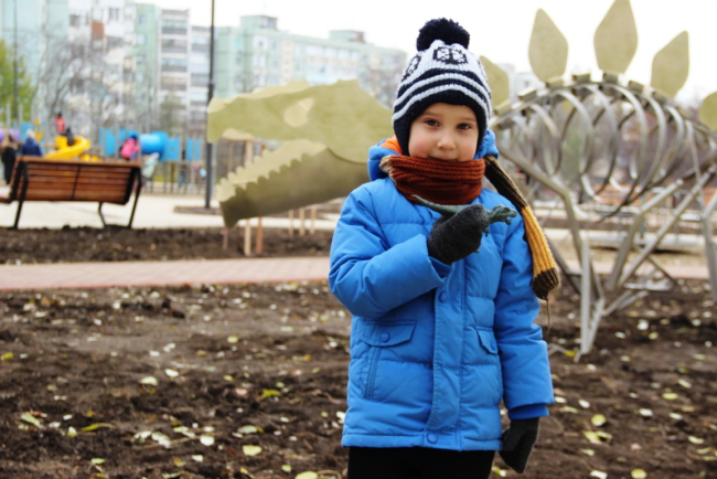 «При декорировании парка была выбрана нестандартная доисторическая тематика. Два "динозавра" – это оригинальные фотозоны, где родители смогут запечатлеть своих малышей. Что до озеленения, то здесь были высажены обычные и шаровидные клёны, липы, ивы, дубы и шелковица. Всё это многообразие дополнили кустарники. Деревья высажены уже сформировавшимися, и мы рассчитываем, что в следующем году они наберут силу, а парк обретёт законченный вид», – отметил Андрей Диордиев.