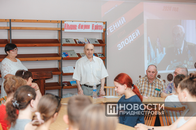 В своем новом издании автор прибегает к необычной форме изложения. Писатель подобрал персонажей из разных эпох и попытался найти ответ на вопрос, почему эти люди стали именно такими. Книгу «Гений или злодей» можно назвать исследовательской работой. Сегодня своими размышлениями Юрий Иванович поделился с бендерской молодежью. Встреча прошла в городской библиотеке.