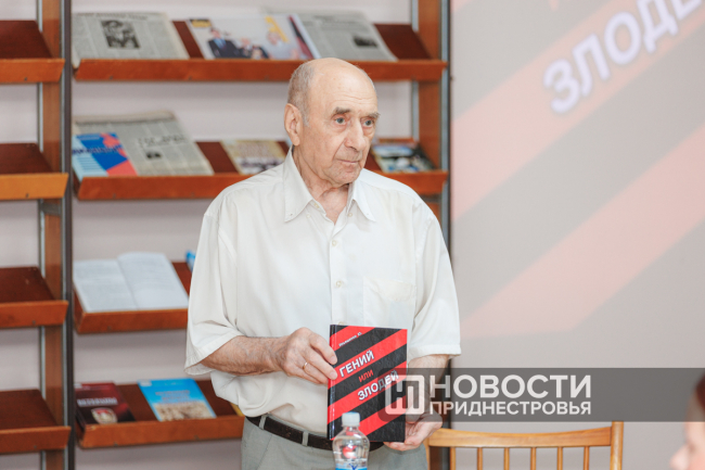 Бендеры, 18 июля. /Новости Приднестровья/. В Бендерах состоялась презентация книги Юрия Ильяшенко «Гений или злодей». Это не первое издание автора. С 2014 года председатель бендерского Совета ветеранов выпустил уже 9 книг разной тематики.