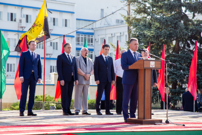 На митинге также выступили первый президент ПМР Игорь Смирнов и глава госадминистрации Бендер Роман Иванченко.