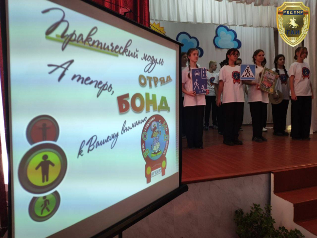 В завершение мероприятия отряд ЮИД «Бонд» (г. Бендеры), ставший победителем республиканского этапа соревнований «Юный инспектор движения – 2023», представил зрителям творческие номера о соблюдении ПДД.