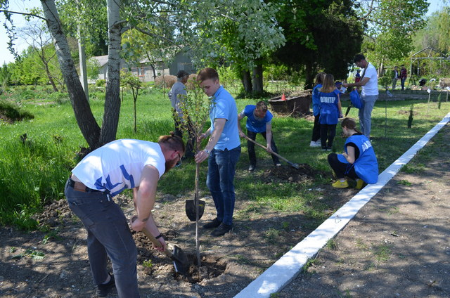 Волонтёры перед Днём Победы высади два десятка деревьев и кустарников