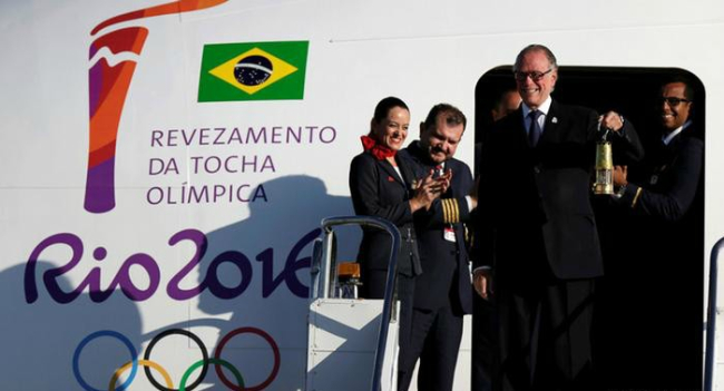 В столицу Бразилии самолетом из Женевы во вторник, 3 мая, доставлен олимпийский огонь – за три месяца до начала летних Олимпийских игр в Рио-де-Жанейро. Он был зажжен 21 апреля в античной Олимпии, сообщает Газета.ru.