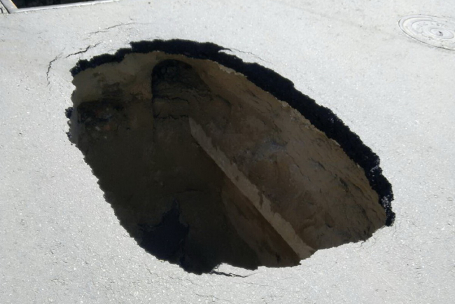 Бендеры, 8 июля. /Новости Приднестровья/. В Бендерах на перекрёстке улиц Лазо и Котовского произошёл прорыв старого канализационного коллектора, который не ремонтировался более 40 лет. Из-за обильных осадков переполнился ливневой колодец. Грунт намок, и под его тяжестью лопнула канализационная труба, за этим последовал провал асфальта, сообщили в пресс-службе Бендерской госадминистрации.