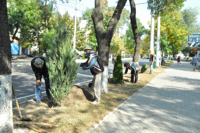 Тирасполь, 3 октября. /Новости Приднестровья/. В Тирасполе на бульваре Гагарина и улице 25 Октября специалистами «Спецзеленстроя» проводятся работы по декоративному озеленению: на линейных газонах высаживают кусты можжевельника сорта Blue Arrow и туи колоновидной.