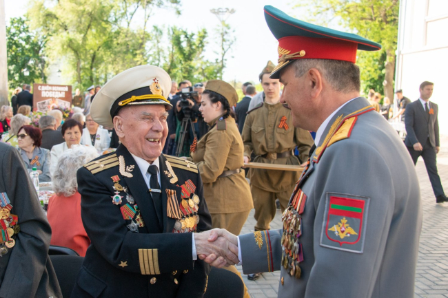 «Уважаемые ветераны, обращаюсь к вам. Низкий вам поклон, берегите себя. Конечно, возраст берет своё, но по возможности приходите ещё в школы, приходите к нашим детям, приходите в университеты. Приходите, вспомните, расскажите. Много не надо. Главное, чтобы была сохранена эта связующая нить современных поколений с поколениями победителей, с теми, кто выстоял, победил, отстроил Советский Союз. Это важно… В этот день, 9 мая, хочу пожелать всем здоровья и мира. Это, наверное, базовые составляющие благополучия отдельного человека и целого государства. Берегите себя, любите Приднестровье, уважайте Приднестровье, гордитесь Приднестровьем», – сказал глава приднестровского государства в ходе праздничного мероприятия.