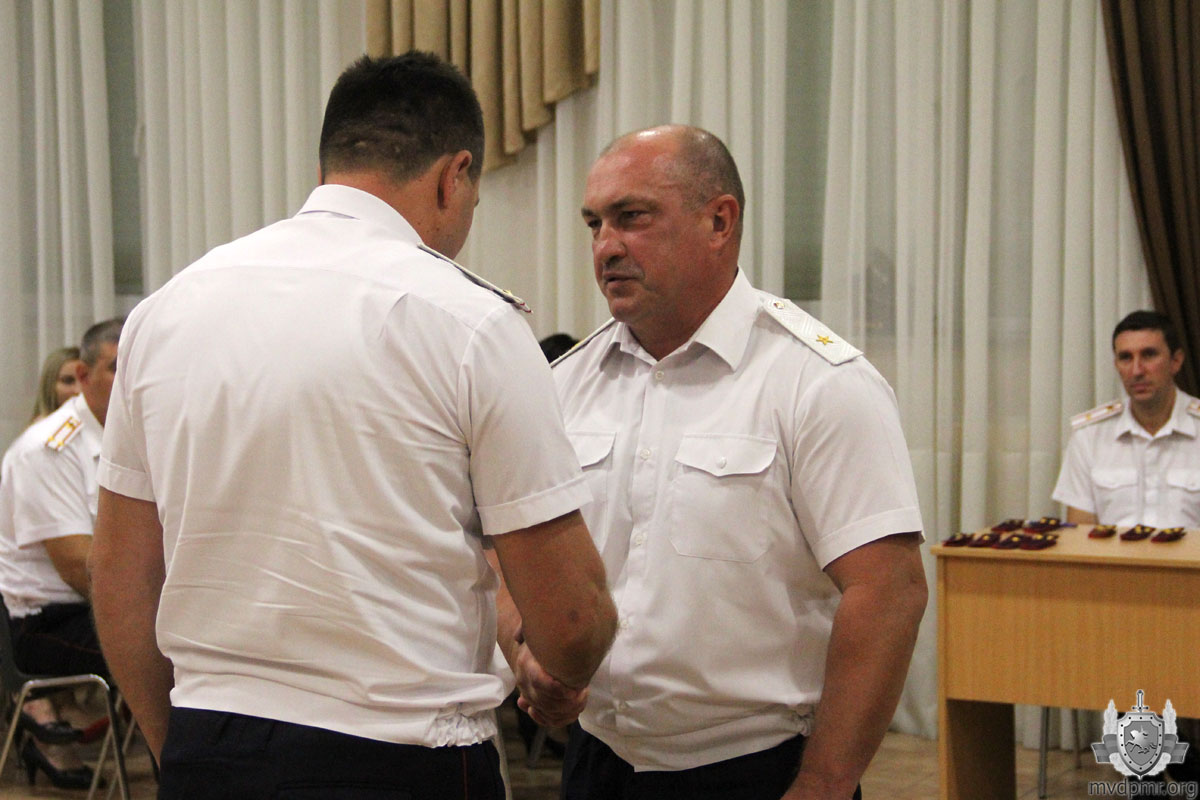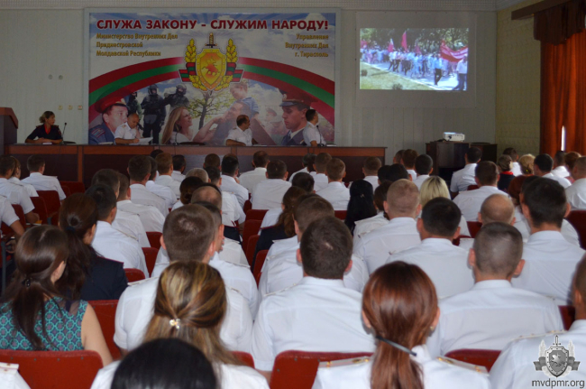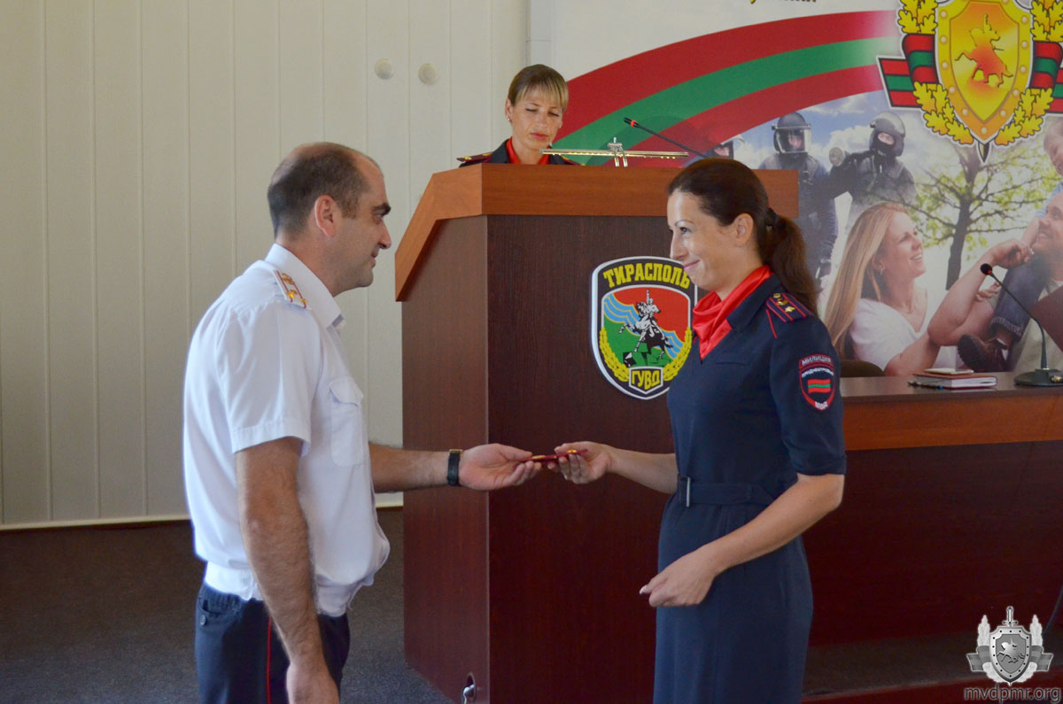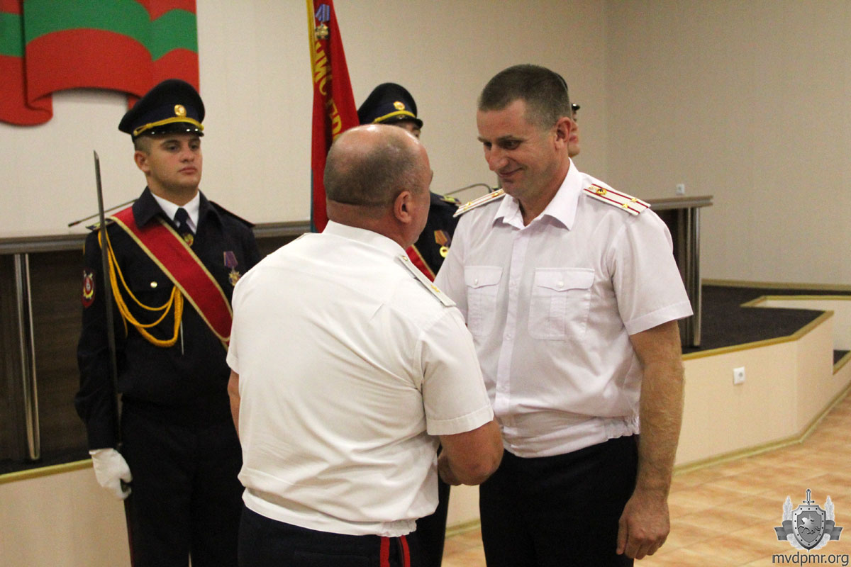 Сегодня же торжественное совещание, посвящённое 28-й годовщине образования Приднестровья, прошло и в УВД Тирасполя. Ряду сотрудников, добившихся высоких результатов в служебной деятельности, были присвоены внеочередные специальные звания, вручены почётные грамоты.