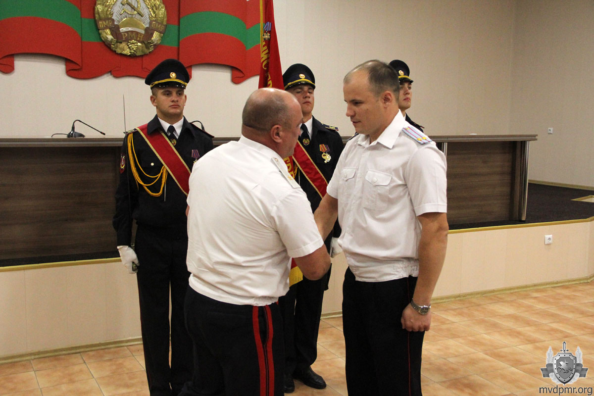 Он поздравил сотрудников ведомства с предстоящим праздником, особо отличившимся вручил государственные и ведомственные награды. Среди них – начальник Тираспольского юридического института им. М.И. Кутузова Иван Майдановский. 15 июля в акватории Кучурганского водохранилища он спас из воды тонувшего гражданина. Майор милиции был награждён медалью «За спасение утопающего».