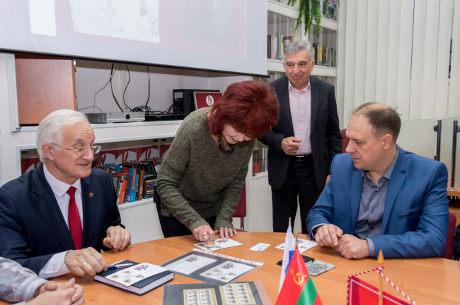 Тирасполь, 19 октября. /Новости Приднестровья/. В серии, презентация которой состоялась сегодня в Центре «Русский мир» Приднестровского госуниверситета им. Т.Г. Шевченко, четыре марки. Изготовлены они были несколькими месяцами ранее, но, как отметил участвовавший в спецгашении главный редактор газеты «Приднестровье» Александр Карасёв, помешали студенческие каникулы и преподавательские отпуска.