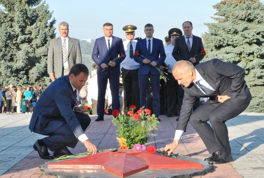 Рыбница, 2 сентября. /Новости Приднестровья/. Праздничные мероприятия, посвящённые 27-летию со Дня образования ПМР, начались с возложения цветов к Обелиску Славы и Мемориалу Славы защитникам Отечества. Затем на площади Победы под гимн ПМР и Рыбницы были подняты флаги республики и города. Глава госадминистрации Вячеслав Фролов и председатель горрайсовета Вадим Лозовский поздравили рыбничан с праздником. Глава района зачитал приветственный адрес Президента ПМР Вадима Красносельского, сообщает пресс-служба местной госадминистрации.