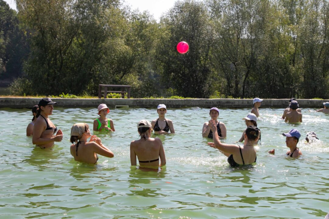 Сразу после торжественного открытия смены дети приняли участие в квест-играх, а также купались в большом открытом бассейне.