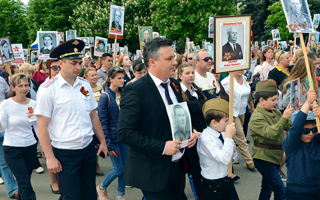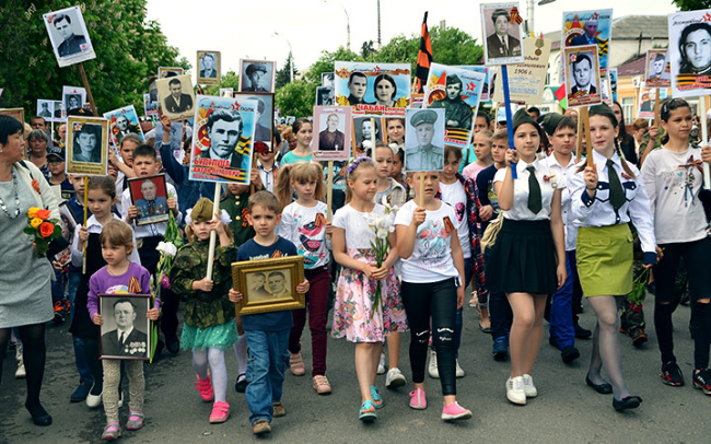 Дубоссарцы разных поколений пронесли по улицам города портреты своих родных и близких – героев войны, сообщает пресс-служба местной госадминистрации. Колонна присоединилась к праздничным мероприятиям, которые проходили в это время на площади Победы.
