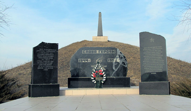 Место установки памятника было выбрано неслучайно – за эту высоту шли бои в 1944 году при освобождении района от немецко-румынских оккупантов.