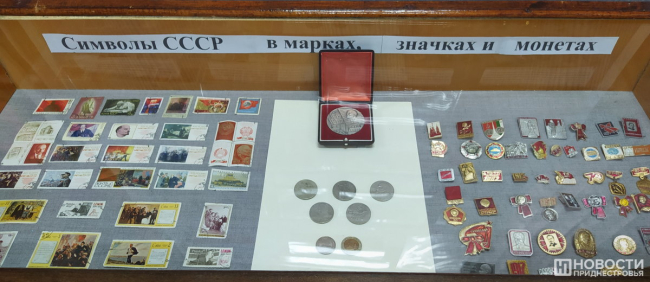 В отдельном разделе представлена коллекция государственных символов СССР в марках, значках и монетах. А также переходящие знамена, вымпелы и кубки трудовых коллективов организаций и предприятий за достижения в профессиональной деятельности различных отраслей и спорте. Ознакомиться с предметами истории и достижениями дубоссарцев во времена Советского Союза можно до конца декабря в историко-краеведческом музее Дубоссар.