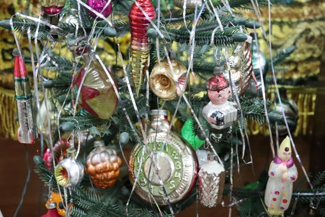 В ней представлены советские и современные новогодние украшения, а также организованы фотозоны