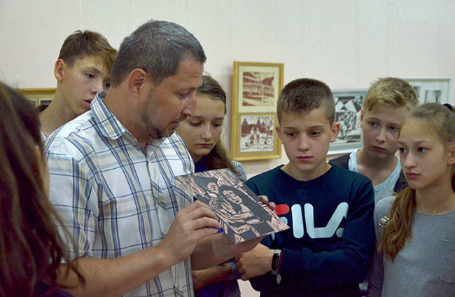 «Создание линогравюры – это долгий и трудоёмкий процесс. Соотношение чёрного и белого цветов всегда будет оставаться классикой. Моя задача как преподавателя заключается в том, чтобы научить детей чувствовать эти цвета и суметь передать настроение и сюжет только с их помощью», - подчеркнул Олег Болтнев.