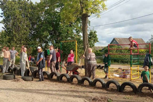 Активистам доставили элементы, демонтированные с других площадок, на месте которых установили новые. Жители улицы Кирова своими руками всё отреставрировали, покрасили и установили. Провели субботник – благоустроили территорию. Госадминистрация помогла с доставкой песка.