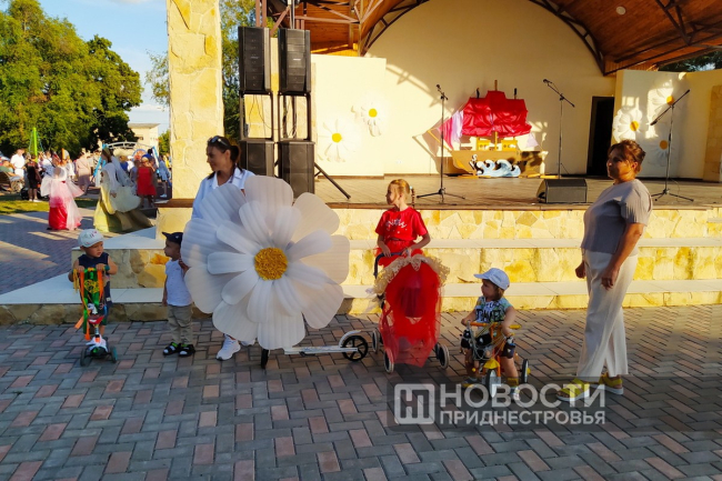 По случаю праздника состоялся и небольшой парад колясок и велосипедов. Семья Тынкул принимала участие в этом конкурсе впервые. Оригинально украсили детскую коляску 8-летняя Алиса и её бабушка. Демонстрировать креативное транспортное средство помогал папа Андрей.